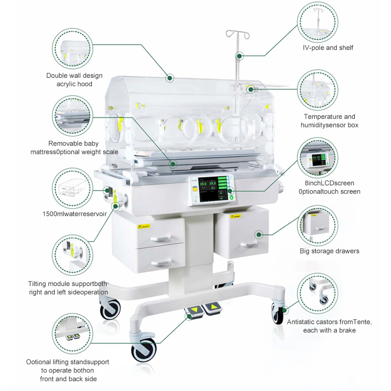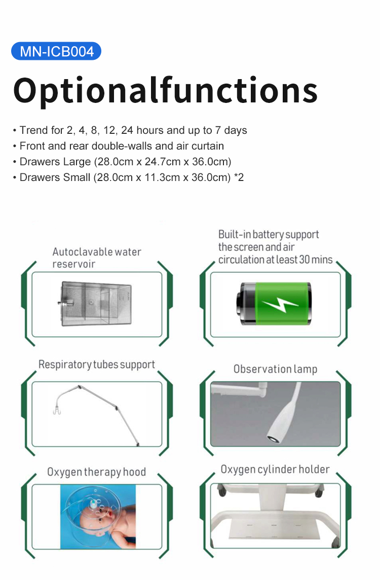 MN-ICB004 حاضنة مرتفعة الطراز للأطفال الرضع المحمولة الطبية اقتصادية حاضنة للأطفال الرضع مع وظائف الإنذار السمعية والبصرية