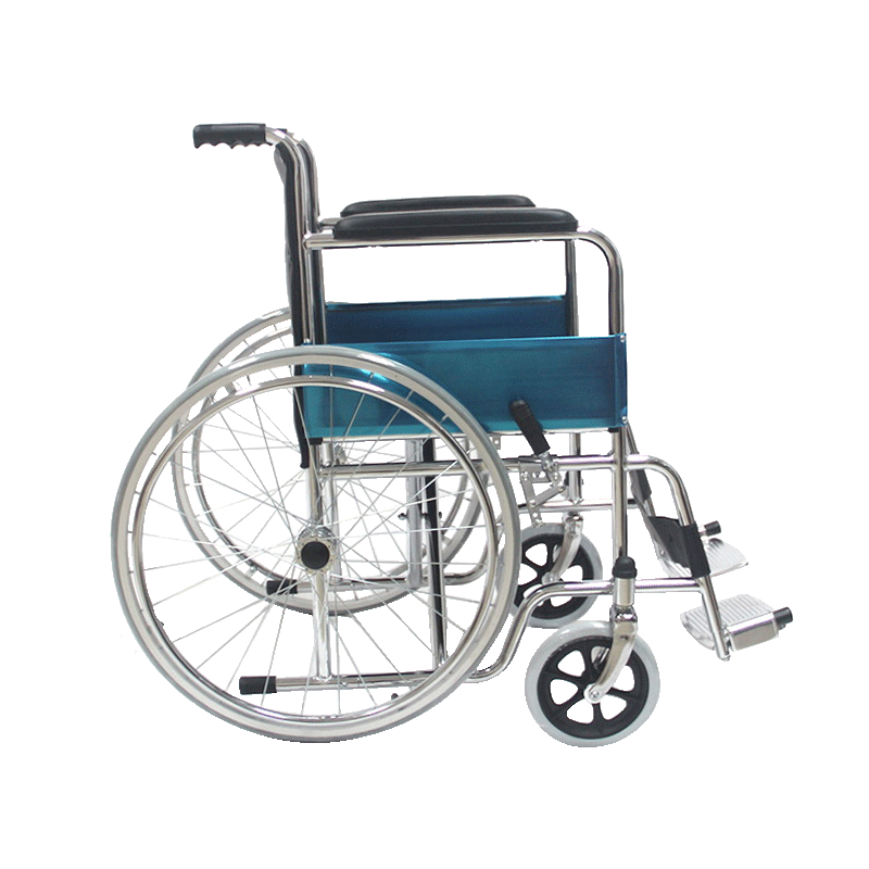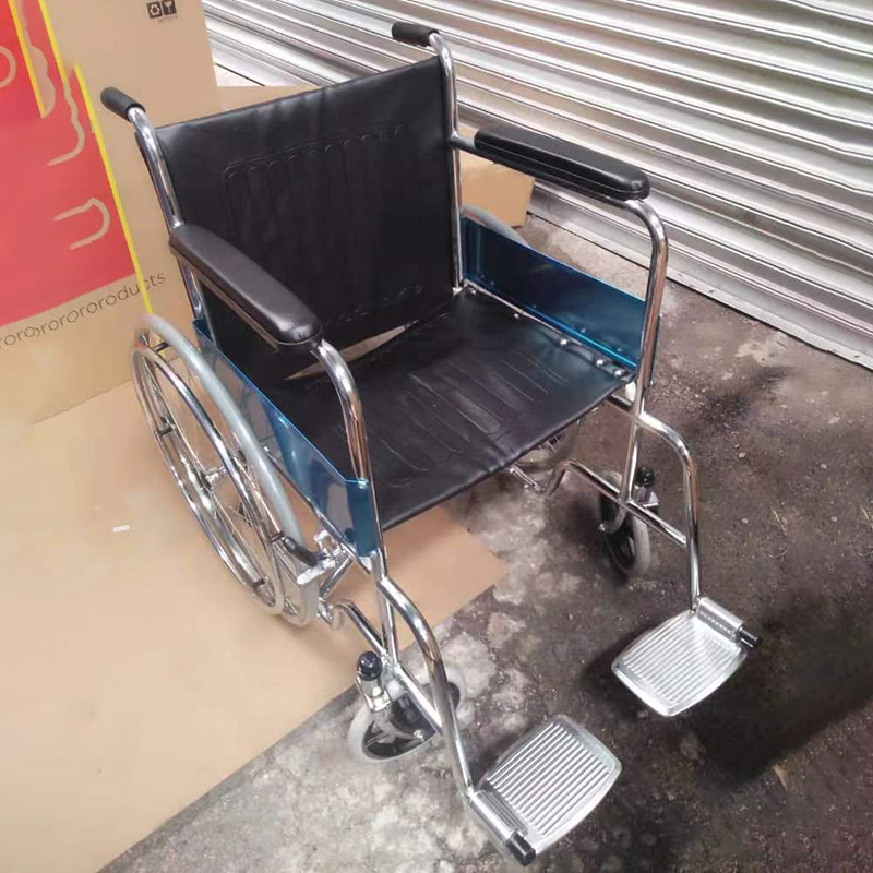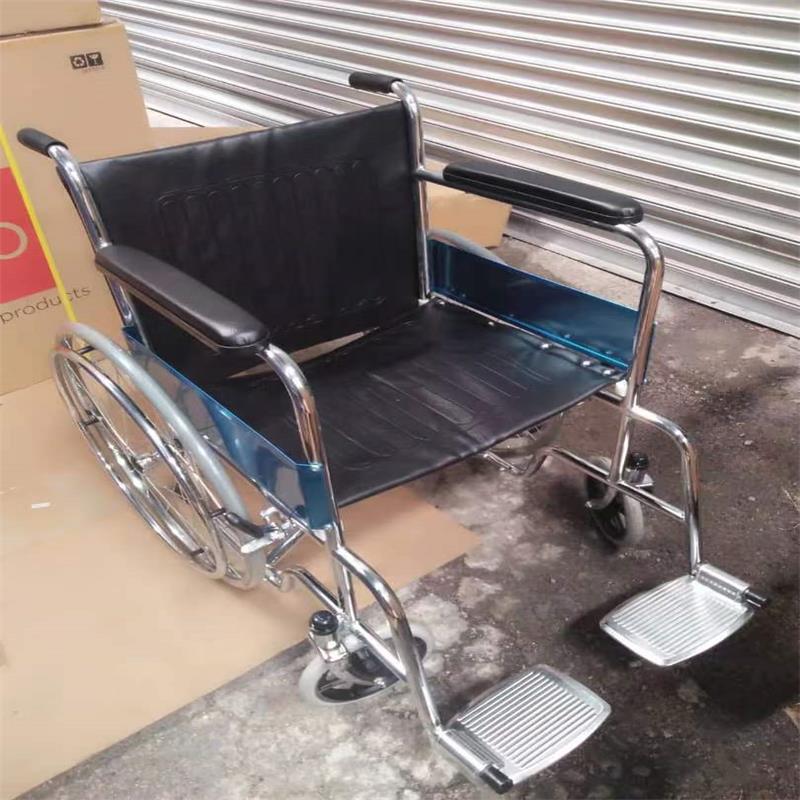كرسي متحرك يدوي من الفولاذ المطوي شائع الاستخدام بسعر ممتاز للمسنين أو المعوقين مع عجلات من الأسطوانات بقطر 24 بوصة